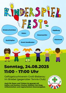 Von 11.:00 Uhr bis 17:00 Uhr bieten wir schöne Spiele mit schönen Preisen für Familien mit Kindern auf dem Gelände des Geflügelzuchtvereins Groß-Bieberau (im Briebel / gegenüber Tennis-Club) an.